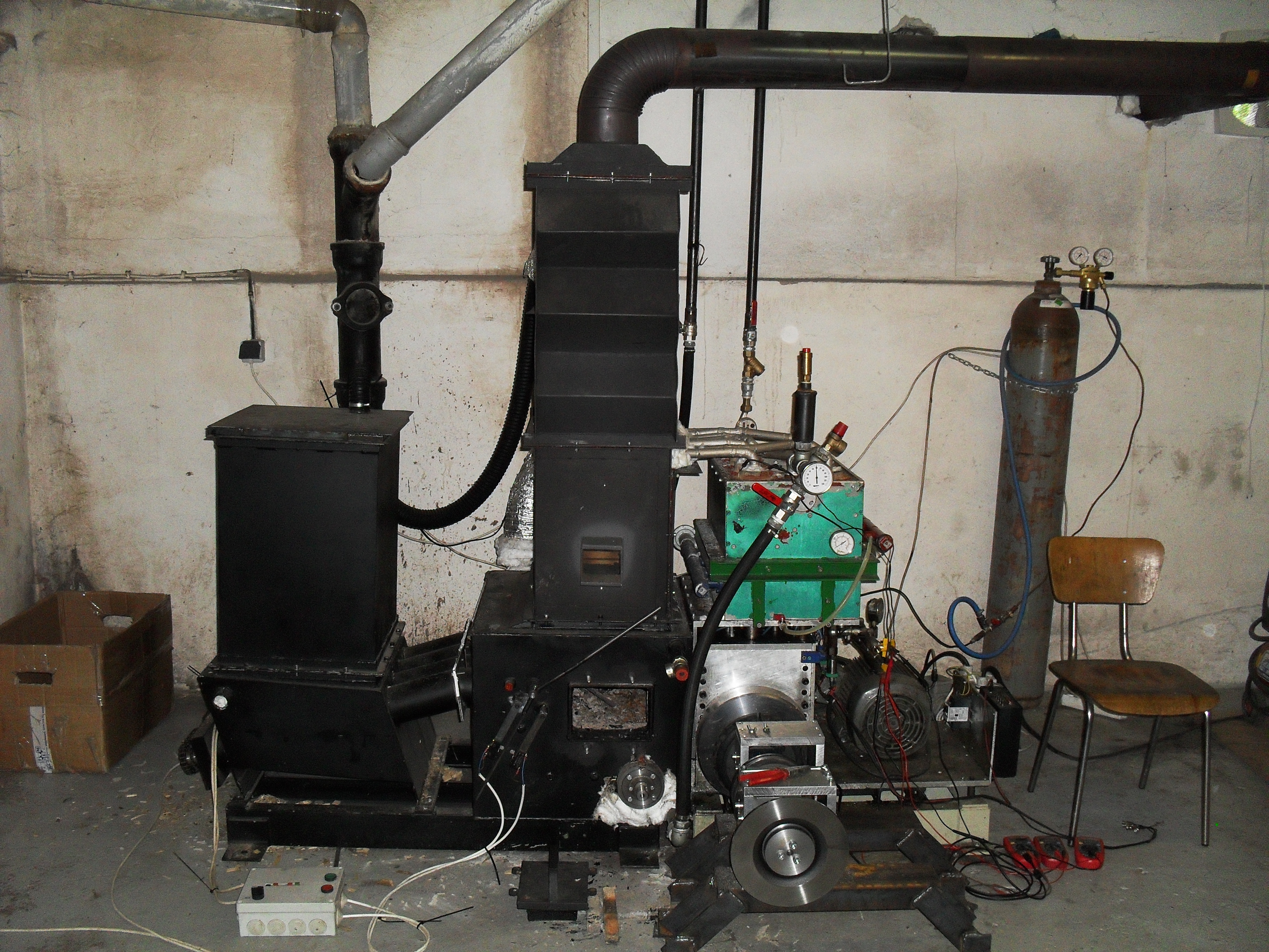 Bol zrealizovany prototyp na baze štvorvalcoveho dvojčinneho prevedenia. Zariadenie spaľovalo biomasu vo forme štiepky.